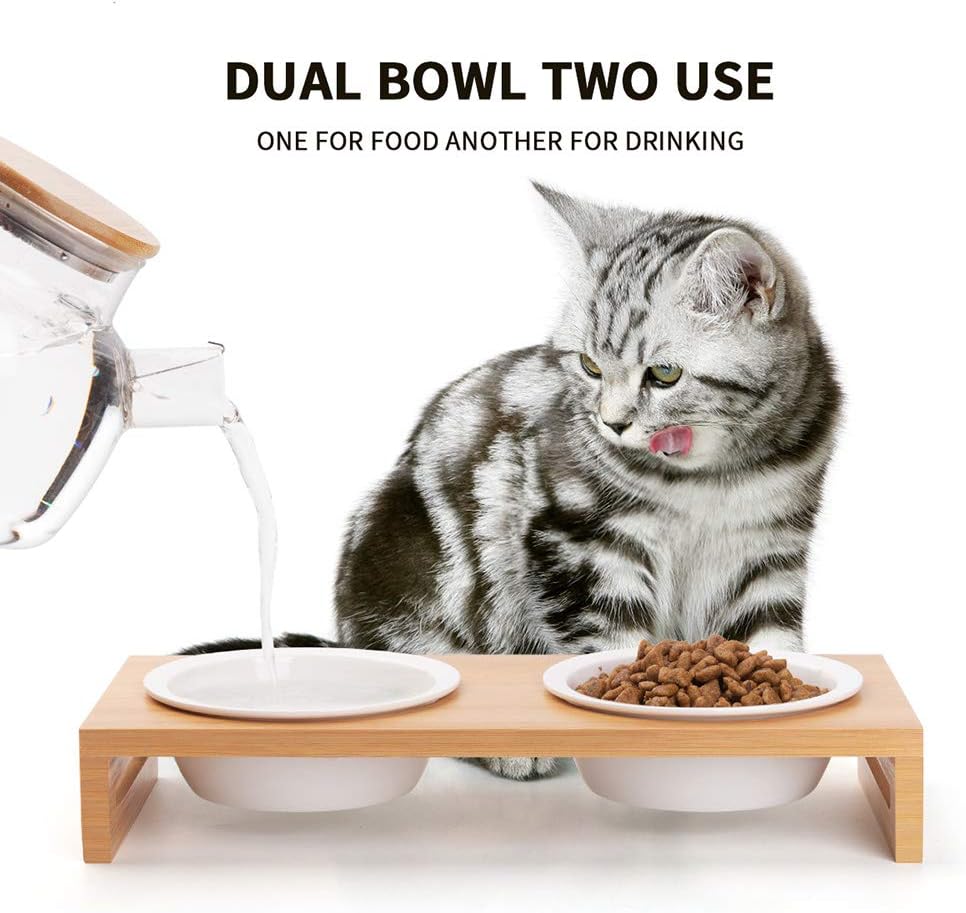 Amazon Com Cat Food Bowls Elevated Cat Bowls For Food And Water Double Ceramic Cat Bowl Raised Cat Dishes With Bamboo Stand Cute And Modern Design Bowl For Cats
