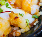 A food hall with food 9 stations including wood-fired pizza home-made pasta ramen bibimbap BBQ.