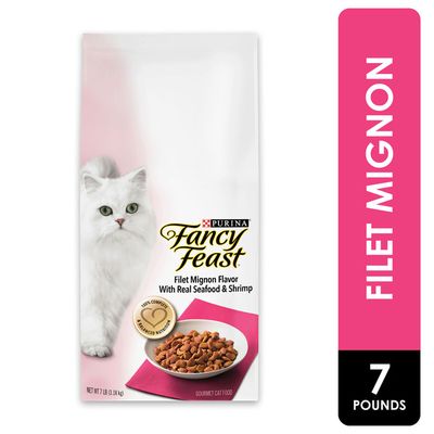 Purina Fancy Feast Dry Cat Food Filet Mignon Flavor with Real Seafood Shrimp - 7 lb. Take mealtime to the next scrumptious level with Purina Fancy Feast Gourmet Filet Mignon Flavor With Real Seafood Shrimp dry cat food. We like to think of our extended family like we would any of us.